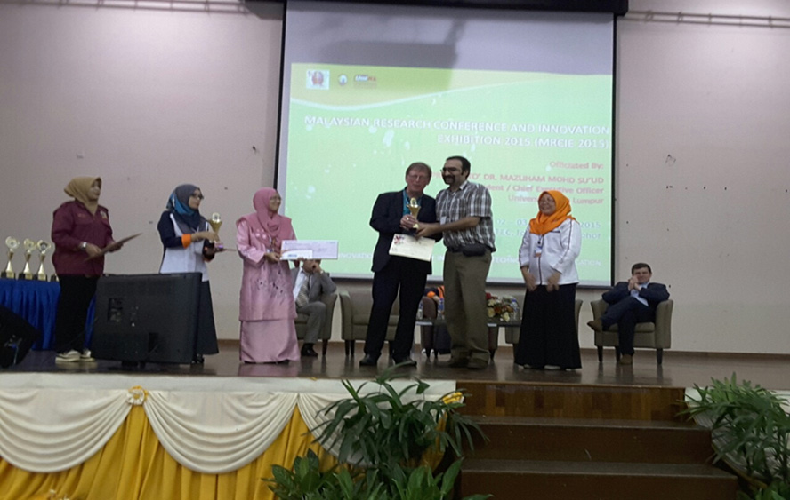 Dr. Mehdi Moeinaddini, Dr. Zahid Sultan, Assoc. Prof. Dr. Muhammad Zaly Shah from Department of Urban and Regional Planning, Faculty of Built Environment (FAB) and Dr. Zohreh Asadi Shekari, a post doctoral researcher at Center for Innovative Planning and Development (CiPD), FAB, won three (3) awards – a gold medal, Special Award and 4th. Best Project at Malaysian Research Conference and Innovation Exhibition 2015 (MRCIE 2015) for their innovative Smart Environment Monitoring (SEM) device. The event was organised by the Research and Innovation Section, UniKL, MITEC on 2nd. – 3rd. December 2015 at Universiti Kuala Lumpur (UniKL), Malaysian Institute of Industrials Technology (MITEC), Persiaran Sinaran Ilmu, Bandar Seri Alam, Johor Bahru, Johor. Other team members that were involved in the project are Mahmood Safaei and Dr Hassan Chizari.