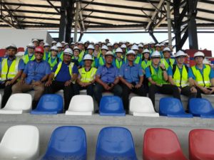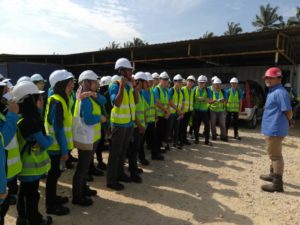 Lawatan Tapak Bina Projek Pembinaan Stadium Olahraga dan Ragbi SUKMA Johor 2020 oleh pelajar program Sarjana Muda Ukur Bahan pada 7 Mac 2019.