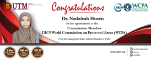 Heartfelt congratulations to Dr. AK Mohd Rafiq AK Matusin and Dr. Nadzirah Hosen, Senior Lecturers (Urban & Regional Planning) for the admission as the Commission Member of IUCN World Commission on Protected Areas (WCPA)