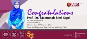 Tahniah diucapkan kepada Prof Madya Ts. Gs. Dr. Mohd Nadzri bin Md Reba atas kenaikan pangkat ke dalam jawatan Profesor Madya (DS54) bermula 9 Disember 2021.