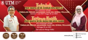 Terima kasih di atas khidmat bakti sebagai Dekan FABU pada 1 Jun 2020 hingga 14 Jun 2021.