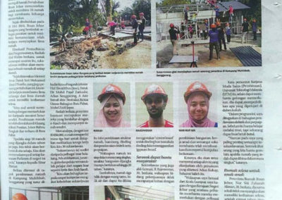 A group of 10 students from Bachelor of Quantity Surveying and Bachelor of Science (Construction) from Department of Quantity Surveying, Faculty of Built Environment, Universiti Teknologi Malaysia with two lecturers were participated in the construction of Rumah Ihsan Johor (RIJ 5) at Kg. Muhibbah Jaya, Senggarang, Johor held on 10-12 February 2017. This is a community project to provide conducive house to those in need. This project takes only 3 days to construct and applied the concept of ‘gotong-royong’ by the volunteers. Besides helping constructing the house, the students also helping in documenting and recording the construction process of Rumah Ihsan Johor and provide feedback on how to improve the current process. The opportunities of joining this project give a valuable experience to the students by bringing the theories to practical besides promoting volunteerism among students and serving community in needs.