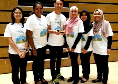 The team from UTM1 comprising Mr. Wan Muhd. Aqib Wan Mohd. Ashaary, Ms. Josephine Lee Siaw Ling, Ms. Nagananteni Subramanian, Ms. Nurul Ainaa Anuar, Ms. Nurul Amirah Zulkipli , Ms. Nur Husna Mahizan and their group advisor Dr. Siti Hajar Misnan won the first prize. They received SGD1000 and a trophy. Singapore’s Ngee Ann Polytechnic and Nanyang Polytechnic won the 1st Runner Up and the 2nd Runner Up respectively. Winners of the competition received their prizes from the judges and the Organisers.