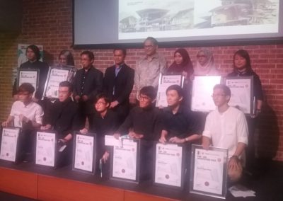 For the LAM Part 2 category, 3 of the 8 finalists are from the Master of Architecture program in UTM. Yet again 2 of the 4 main winners who each received RM5OOO are from UTM. They are Lam Chee Hau supervised by Assoc. Prof Dr. Dilshan Remaz, and Phuah Chu Yin who was supervised by Dr Khairul Anwar. Geraldine Teoh Pei Lynn who was supervised by Ar Samsiah also won RM1000 as the 3rd finalist from UTM.