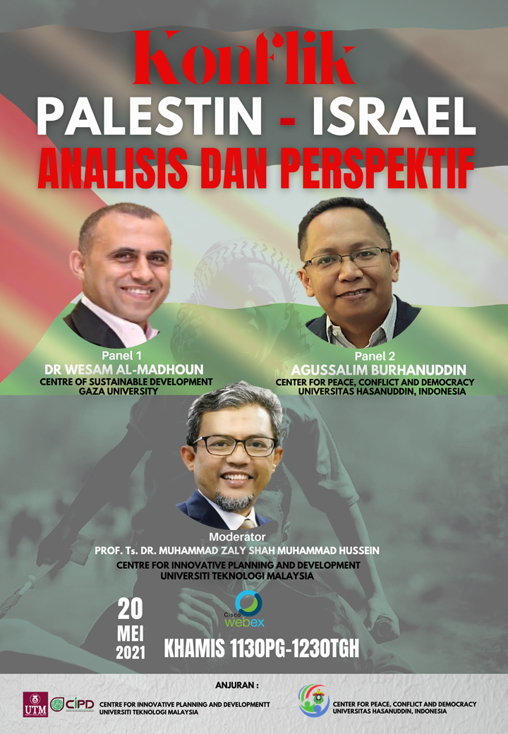 Konflik Palestin-Israel : Analisis dan Perspektif highlight Skills Posted on May 19, 2021 ← Workshop PhD Inquiry Series 2 Webinar Rethinking Cultural Landscape in Malaysia: Appreciating the Ordinary →