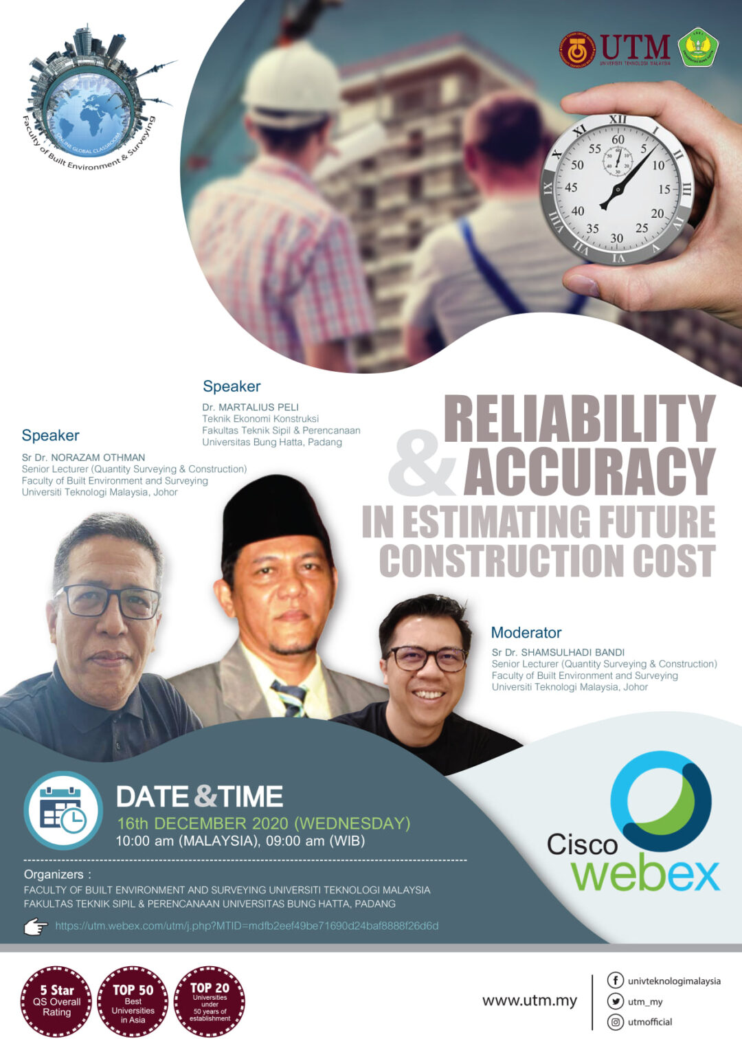 7th Online Global Classroom (OGC) – Reliability and Accuracy in Estimating Future Construction Cost highlight Skills Posted on December 14, 2020 ← Majlis Anugerah Kecemerlangan FABU 2020 UTM CRES Concern Webinar →