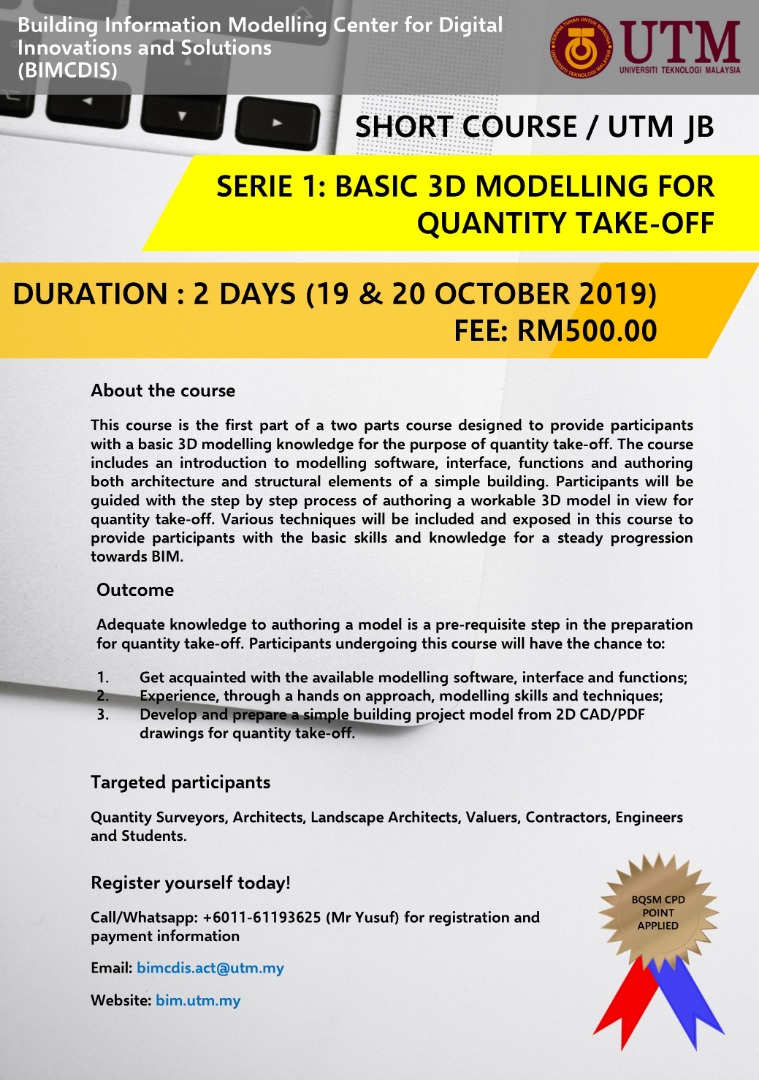 “BASIC 3D MODELLING FOR QUANTITY TAKE-OFF” highlight Skills Posted on September 19, 2019 ← Geospatial Kuala Lumpur 2019 FABUlous Video Competition →