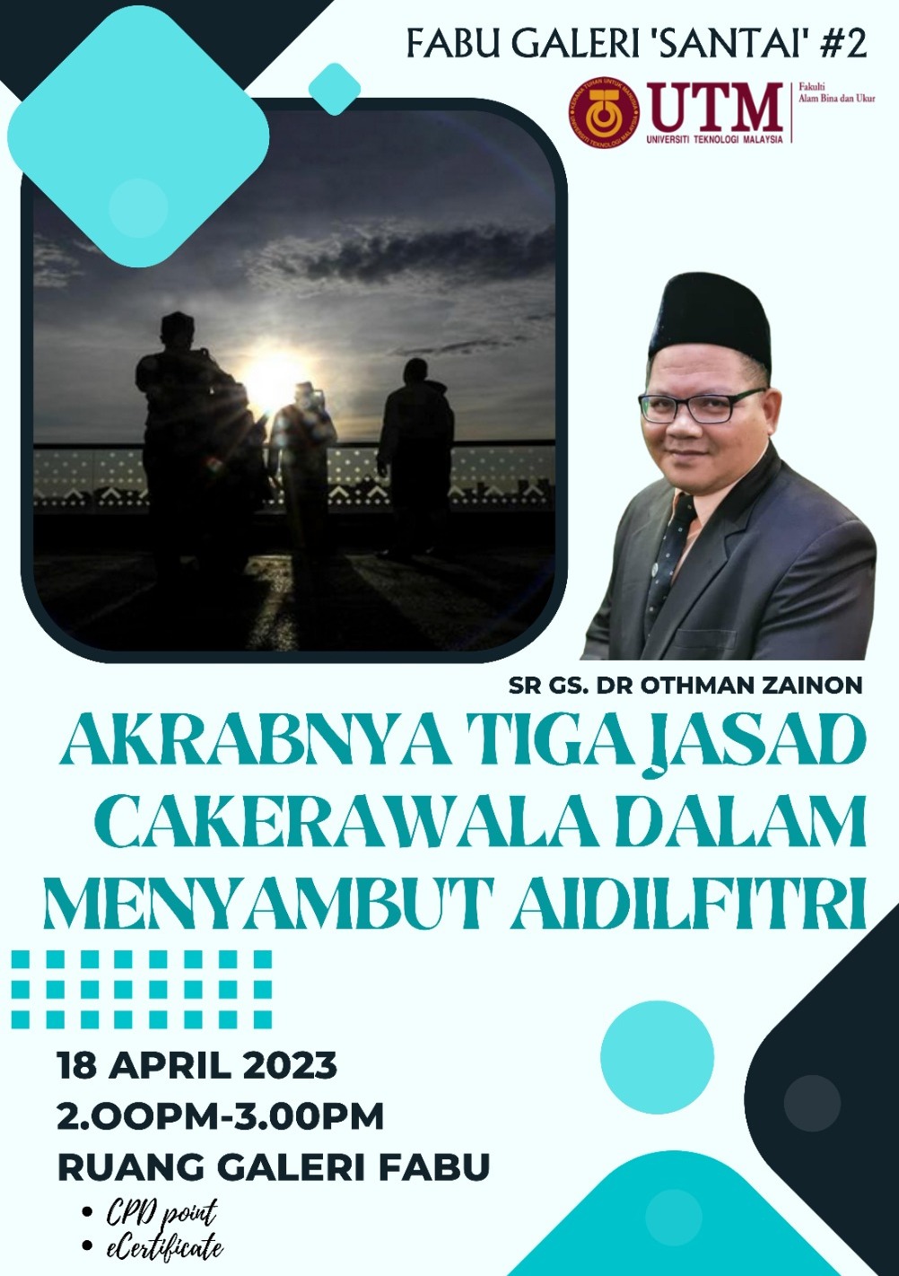 FABU Galeri ‘SANTAI’ ingin mempelawa warga FABULous untuk mendengar perkongsian “AKRABNYA TIGA JASAD CAKERAWALA DALAM MENYAMBUT AIDILFITRI”