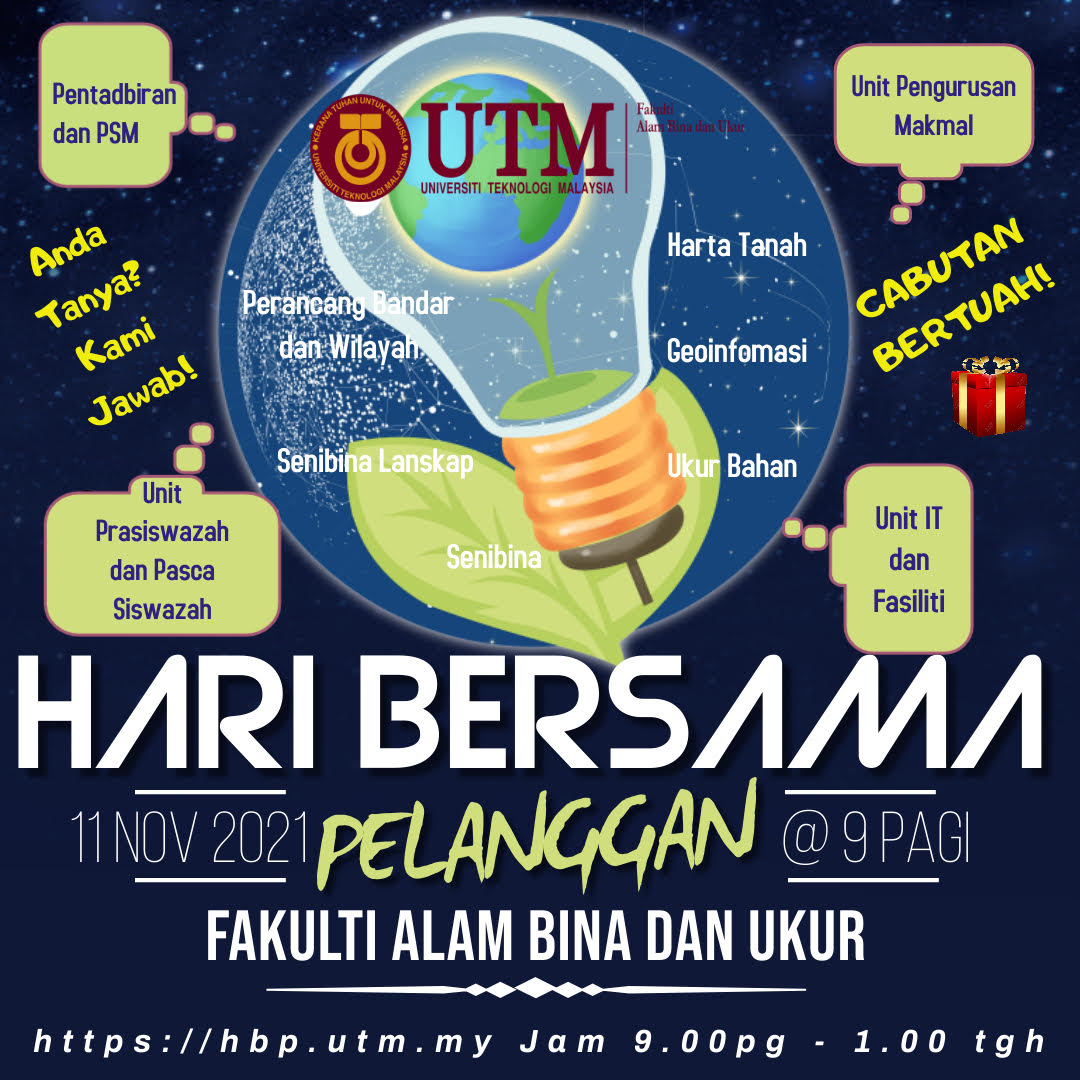 Majlis pembukaan oleh Yang Berbahagia Dekan di peringkat fakulti akan diadakan melalui link Fakulti yang boleh diakses melalui medium/platform web https://hbp.utm.my selepas selesai Majlis Pembukaan di peringkat Universiti yang dirasmikan oleh Yang Berbahagia Datuk Naib Canselor.