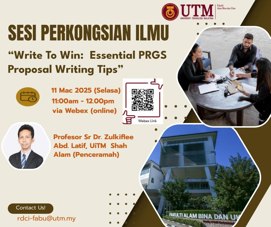 Jemputan ke Sesi Perkongsian Ilmu “Write to Win: Essential PRGS Proposal Writing Tips” . Butiran program seperti berikut: