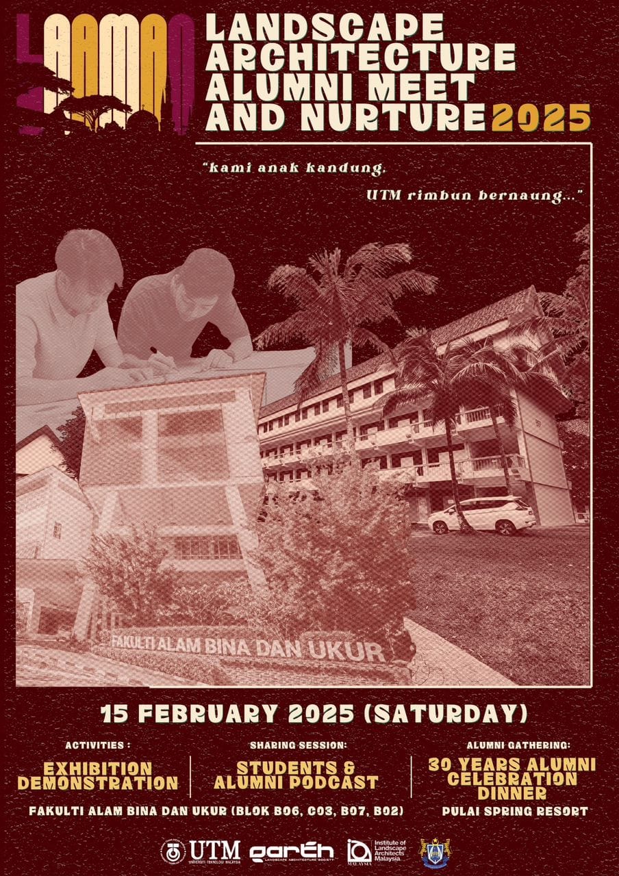 All FABU Landscape Architecture Alumni are warmly invited to LAAMAN 2025, celebrating 30 years of UTM Landscape Architecture Alumni!