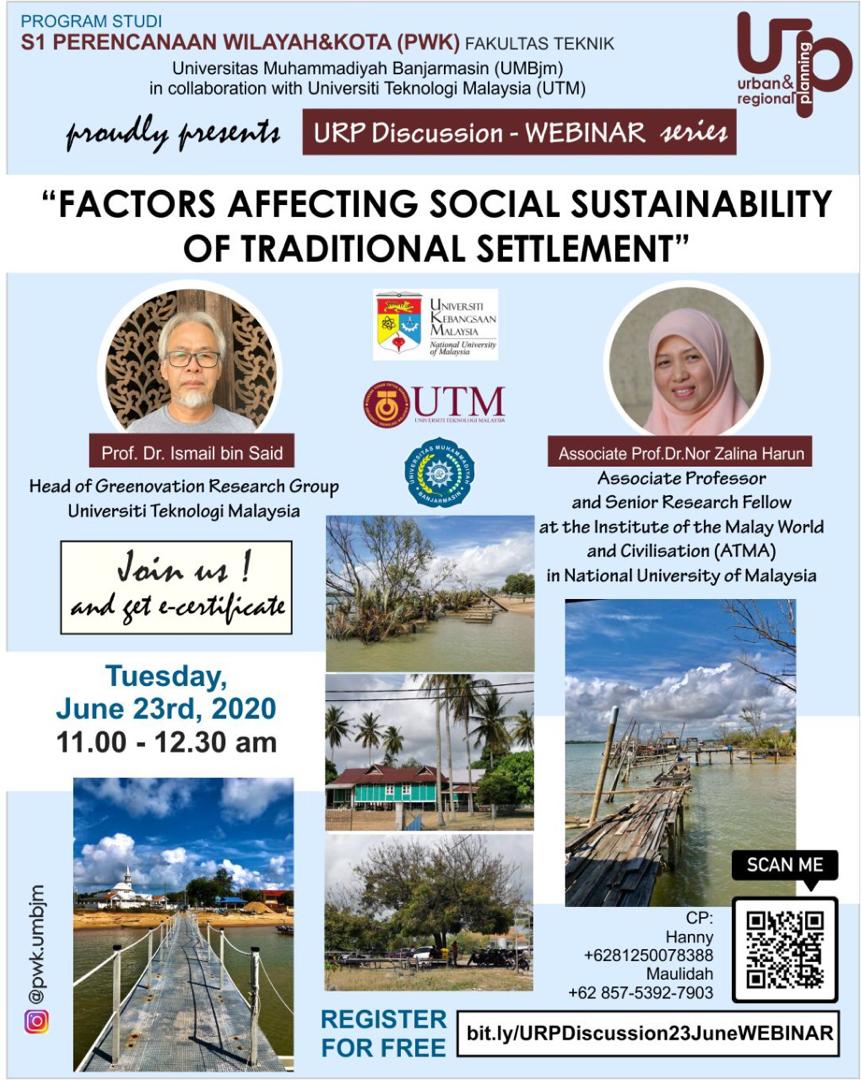 Factors Affecting Social Sustainability of Traditional Settlement highlight Skills Posted on June 9, 2020 ← Online Workshop 2020 International Collaboration Series Pasca Pandemik Covid-9 : Norma Baharu Pasaran Hartanah →