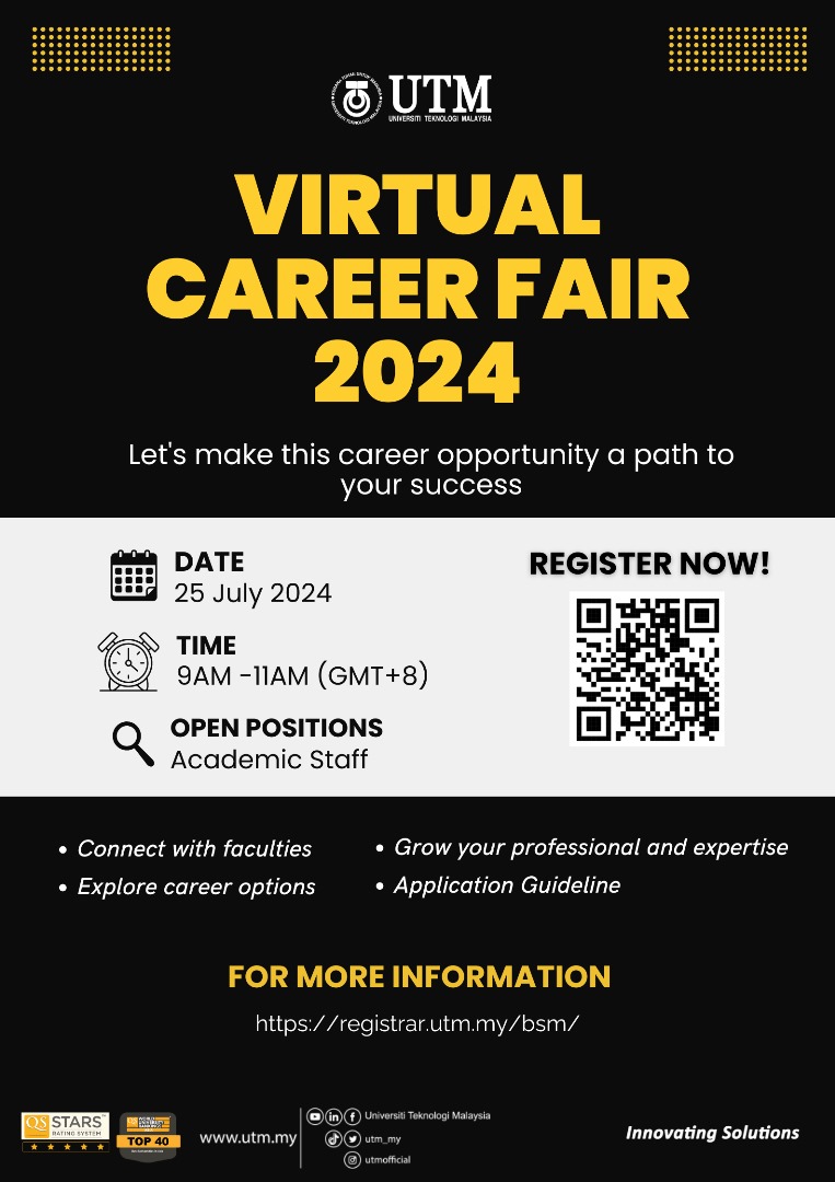 Virtual Career Fair 2024 highlight Skills Posted on July 21, 2024 ← Proses Permohonan MOU/MOA/LOC PROGRAM BICARA SARJANA ” Mastering Your Niche: Strategies for Academic Excellence in an Ever-Expanding World” →