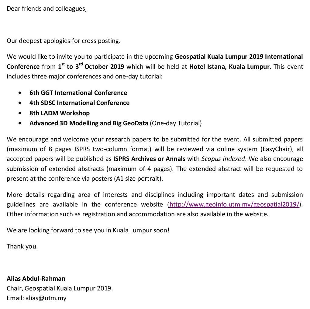 Official website : http://www.geoinfo.utm.my/geospatial2019/