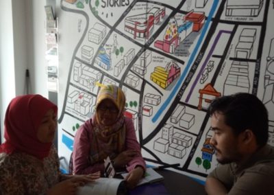 Rajah 3: Aktiviti jejak warisan di Johor Bahru. Sebuah sesi taklimat mengenai usaha rejuvenasi (rejuvenation) dan rehabilitasi (rehabilitation) bandar disampaikan oleh Izzul Hakim, Program Executive, Think City JB