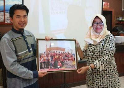 Pengarah program menyampaikan cenderamata kepada wakil UNS, Dr. Winny sempena majlis penutup dan jamuan di Restoran Makjah, Rumah Alumni UTM