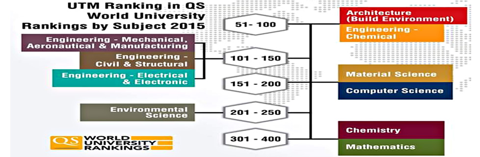 Congratulations to everyone at the Faculty of Built Environment! The QS World University Ranking by Subject released officially on the 29 April 2015 shows UTM listed in the top 100 universities in worldwide rankings for Architecture/Built Environment and Chemical Engineering. This commendable achievement would not have been possible without the contribution of each and everyone at the faculty, and it is hoped this will be the impetus for us to reach greater heights.